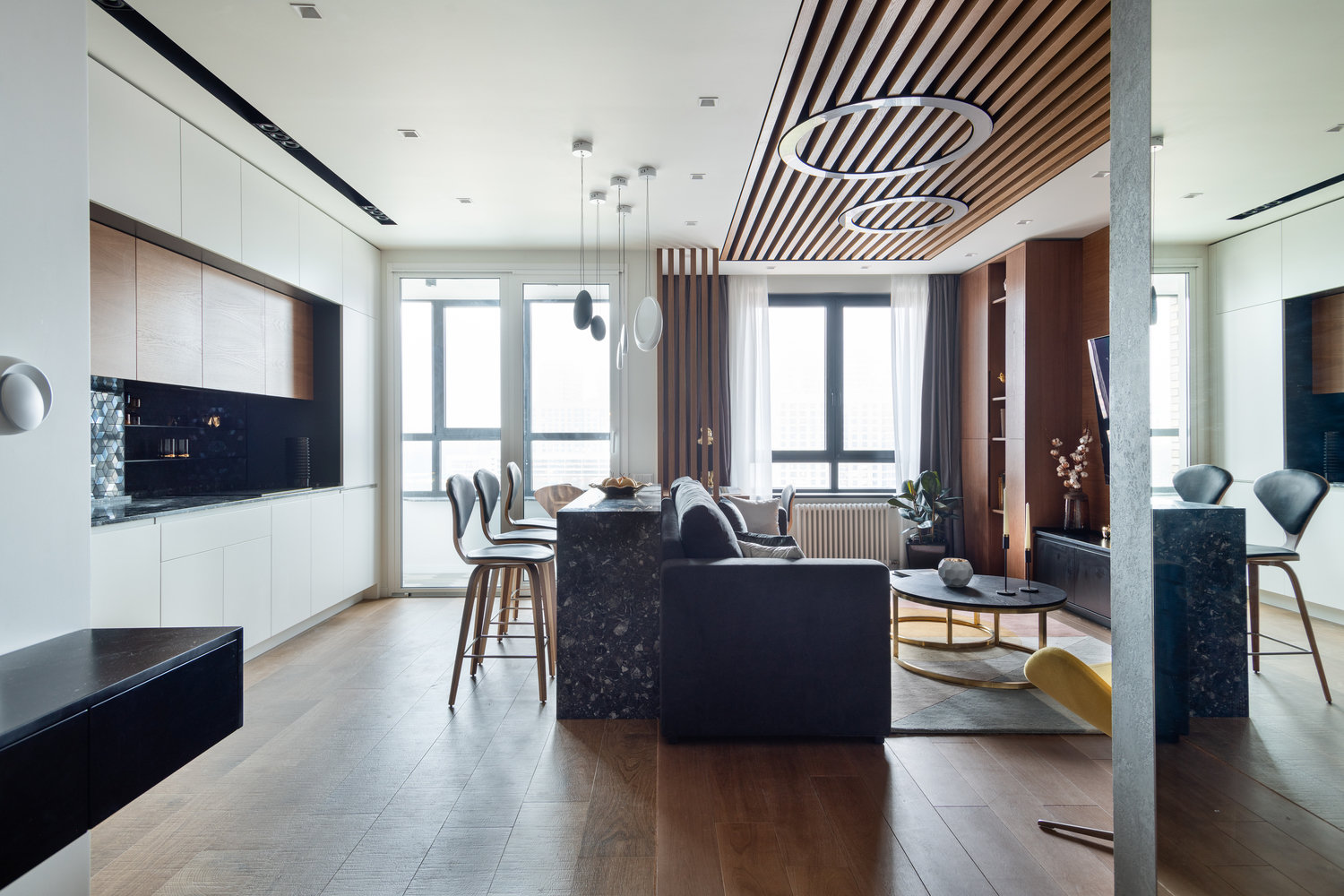 Современная двушка с отделкой из дерева и камня4,6