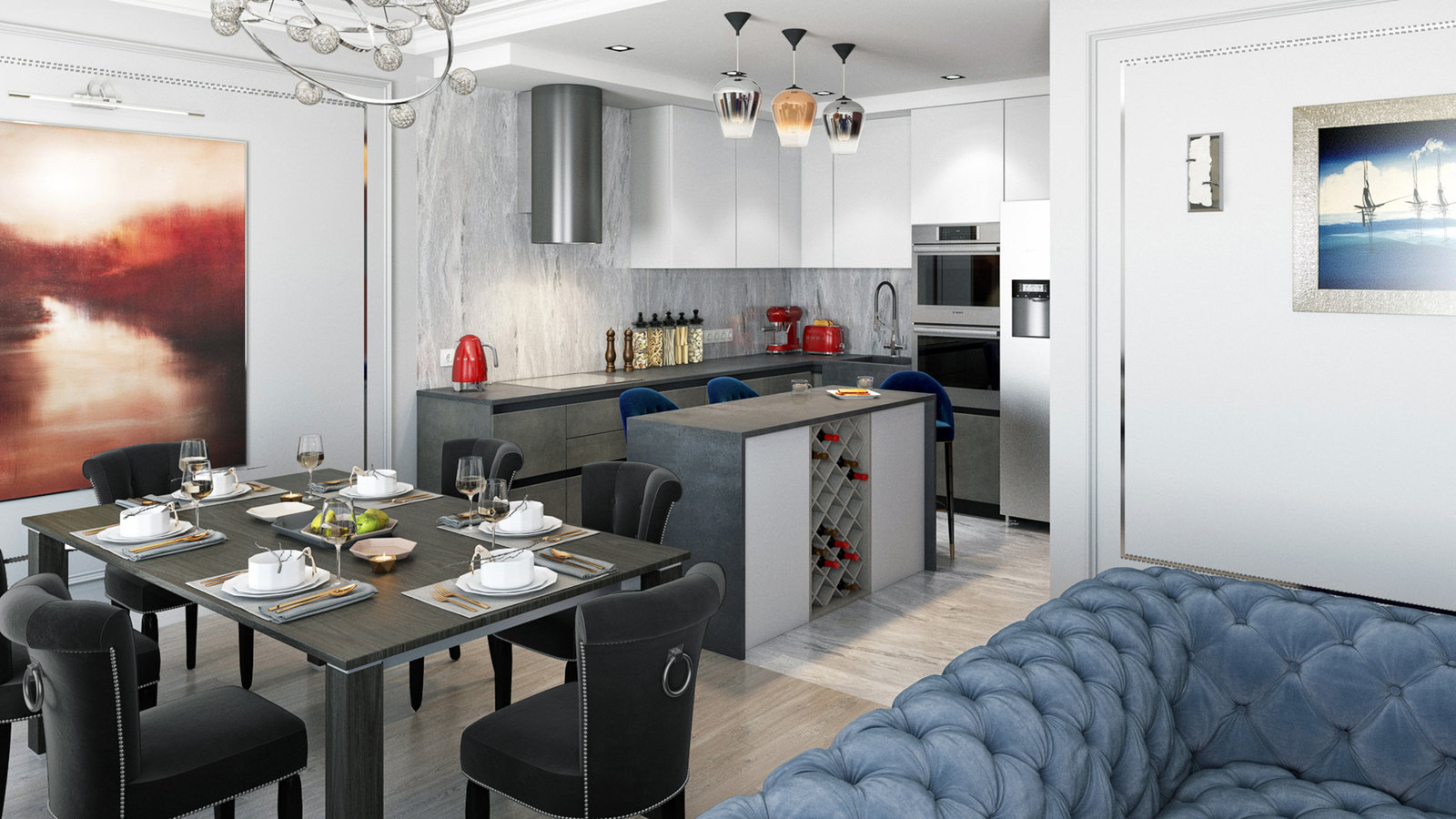Интерьер квартиры в ЖК Wellton Park (95,7 кв.м.) "Палитра"Гамма