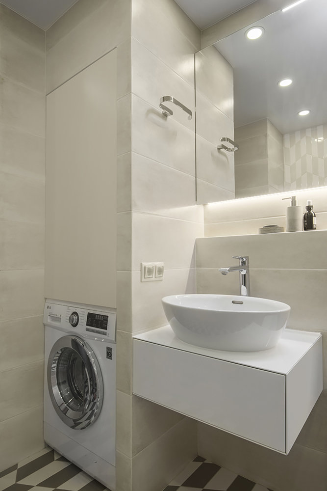 Фотография: Ванная в стиле Современный, Квартира, Проект недели, Москва, Панельный дом, 3 комнаты, 40-60 метров, 60-90 метров, Юлия Савонова – фото на INMYROOM