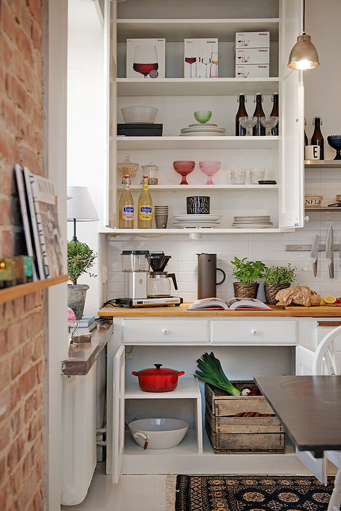 Фотография: Кухня и столовая в стиле Лофт, Скандинавский, Малогабаритная квартира, Квартира, Швеция, Цвет в интерьере, Дома и квартиры, Белый, Стена – фото на INMYROOM
