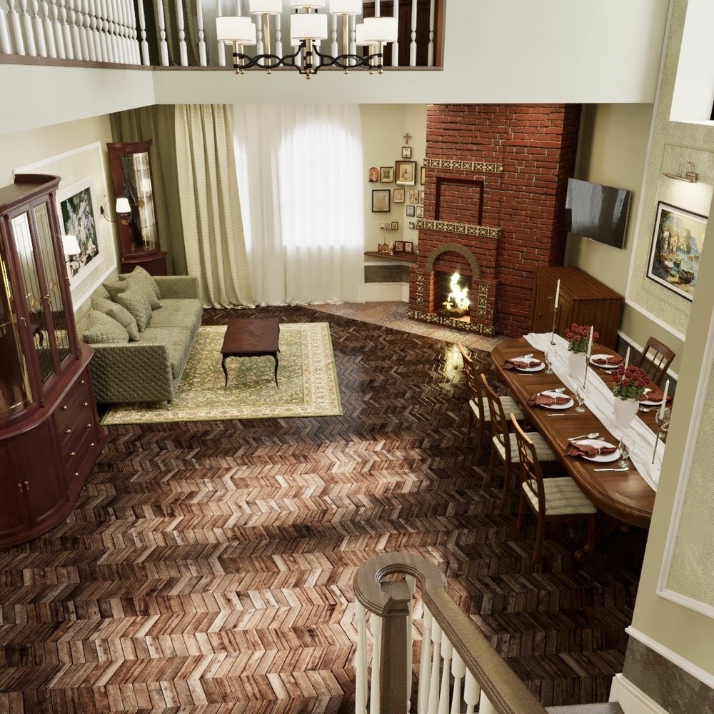 Визуализация проекта загородного дома в классическом стиле.Гамма
