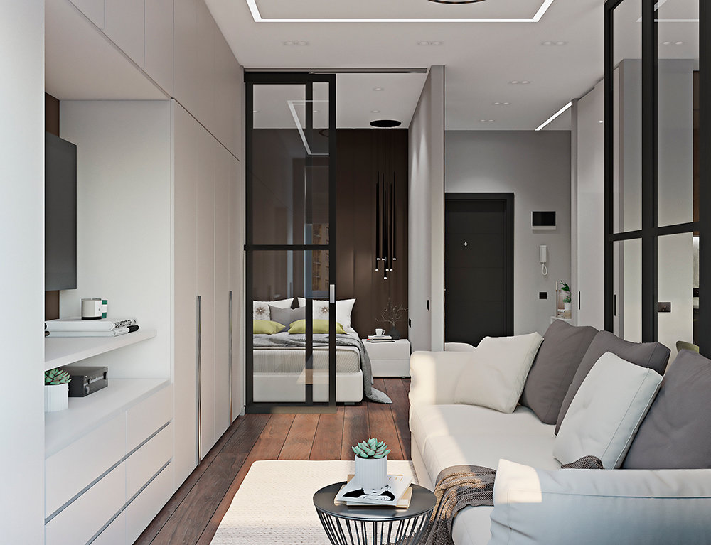 Перепланировка студии с большой кухней и спальней4,8