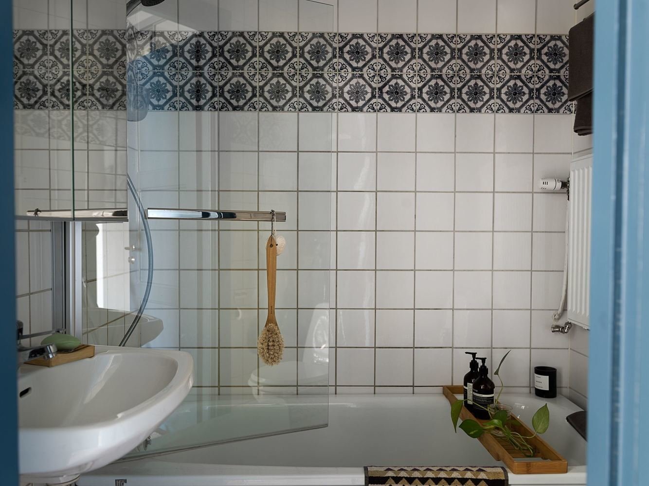 Фотография:  в стиле , Скандинавский, Квартира, Советы, Белый, Синий, Серый, 1 комната, до 40 метров – фото на INMYROOM