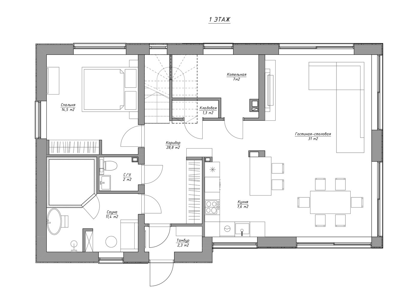 План с расстановкой мебели, 1 этаж
