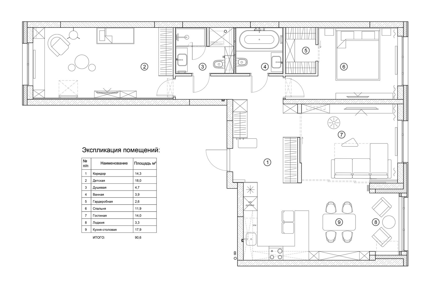 Проект недели: трешка с удобной кухней-гостиной4,6