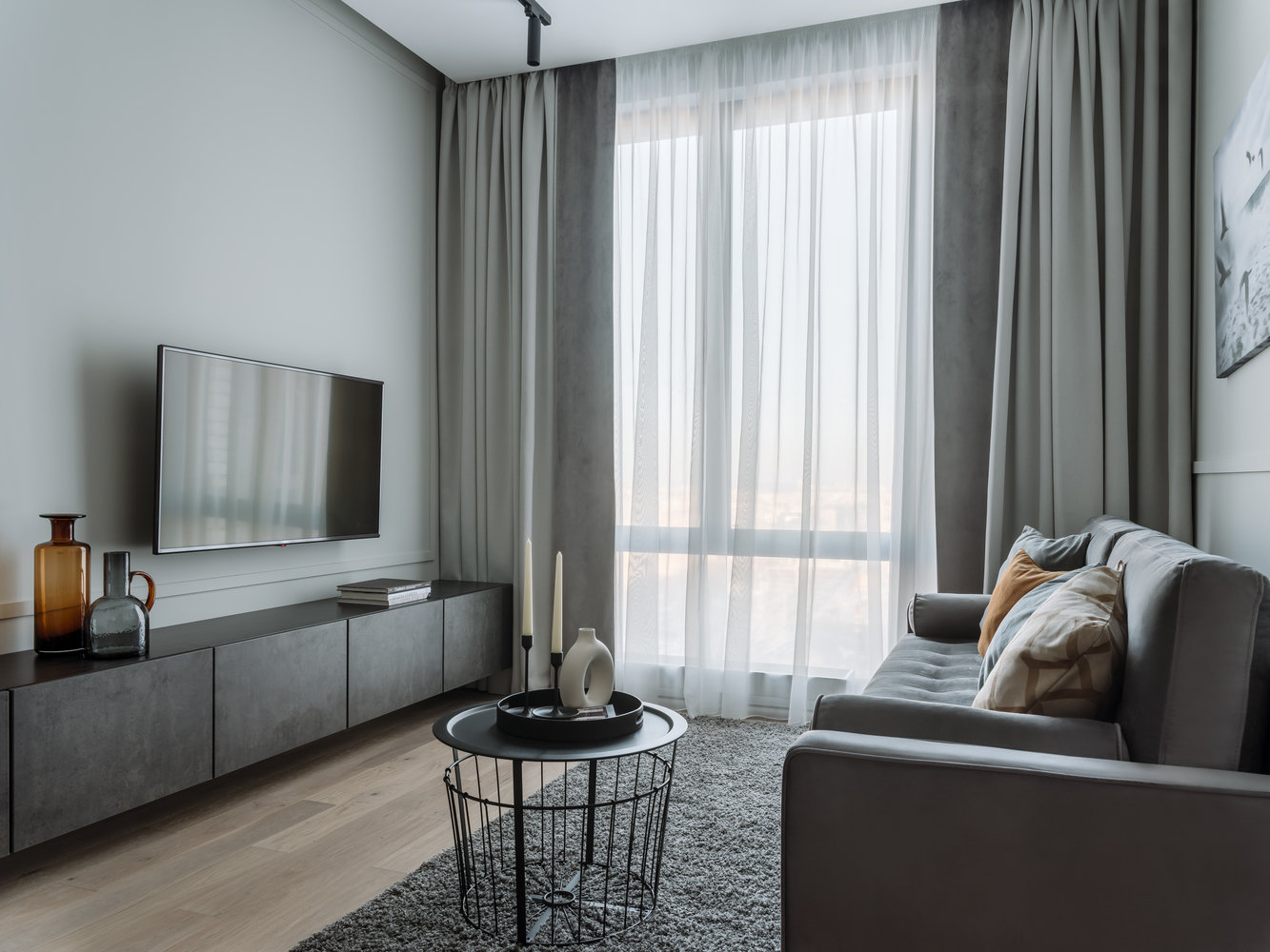 Уютная серо-бежевая квартира с панорамными окнами4,8