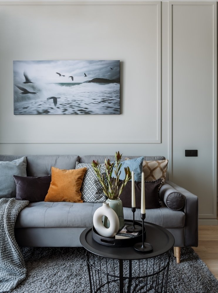 Уютная серо-бежевая квартира с панорамными окнами4,8