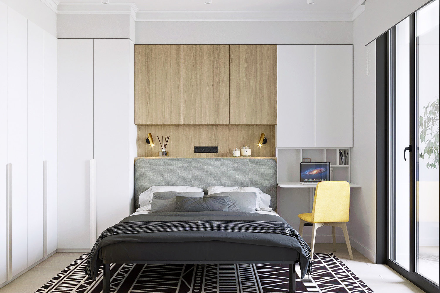 Фотография: Спальня в стиле Современный, Скандинавский, Квартира, Проект недели, Москва, 2 комнаты, 3 комнаты, 60-90 метров, Татьяна Казанцева – фото на INMYROOM