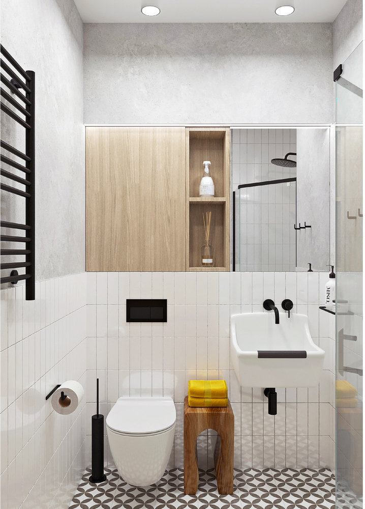 Фотография: Ванная в стиле Современный, Скандинавский, Квартира, Проект недели, Москва, 2 комнаты, 3 комнаты, 60-90 метров, Татьяна Казанцева – фото на INMYROOM