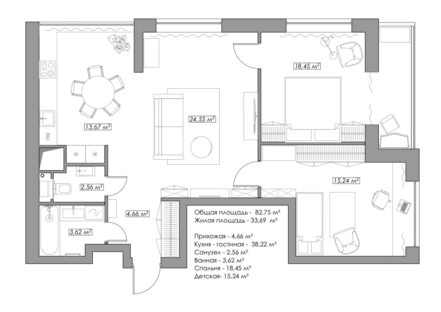 План с расстановкой мебели