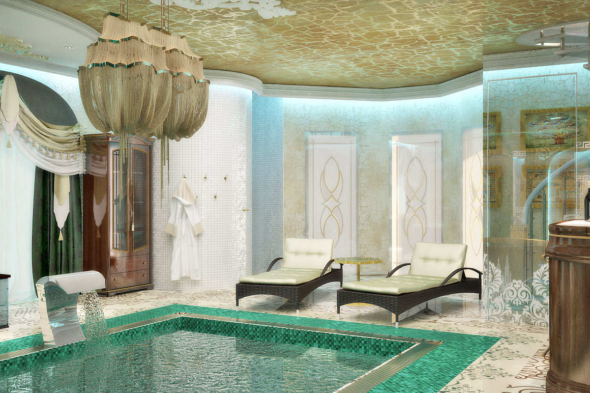 Фото из портфолио Комната с бассейном в восточном стиле - 3D визуализация – фотографии дизайна интерьеров на INMYROOM