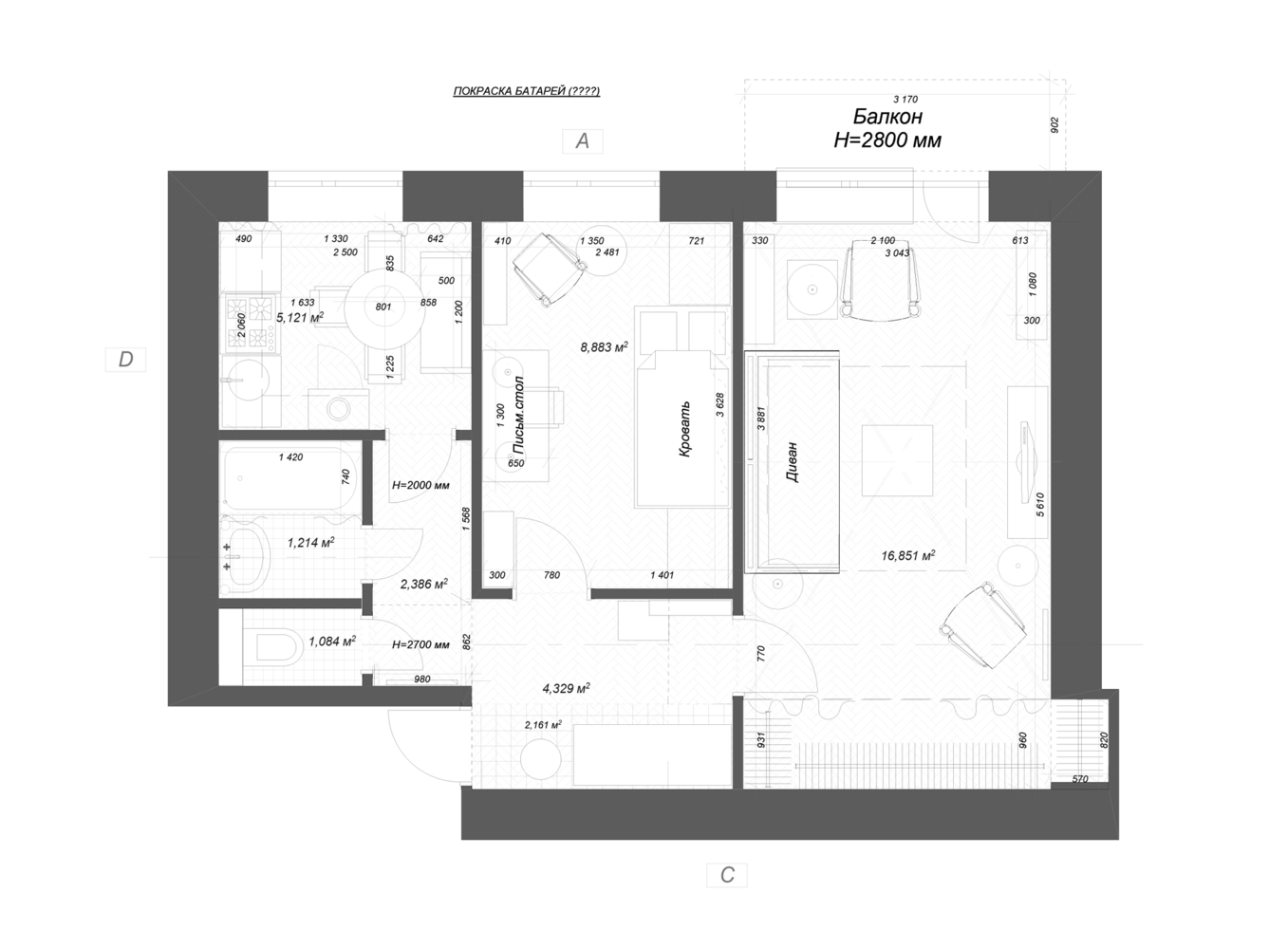 Двухкомнатная квартира 40 м² в типовом кирпичном домеДизайн