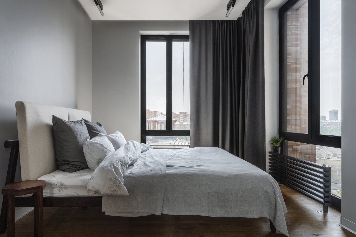 Фотография: Спальня в стиле Современный, Минимализм, Квартира, Проект недели, Москва, Samsung, 2 комнаты, 40-60 метров, интерьерный телевизор, the serif – фото на INMYROOM