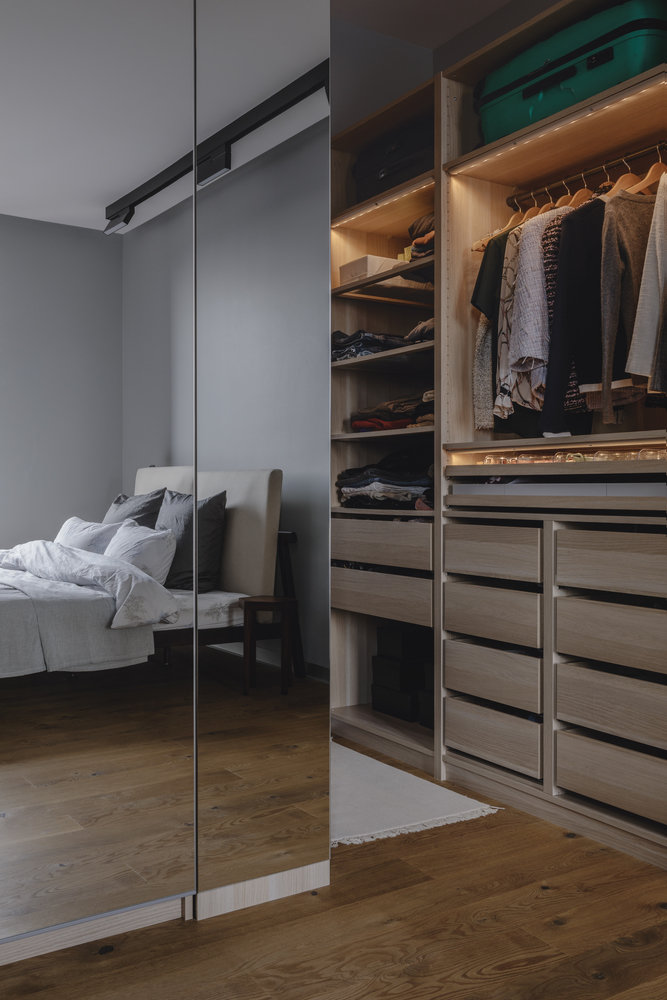 Фотография: Спальня в стиле Современный, Минимализм, Квартира, Проект недели, Москва, Samsung, 2 комнаты, 40-60 метров, интерьерный телевизор, the serif – фото на INMYROOM