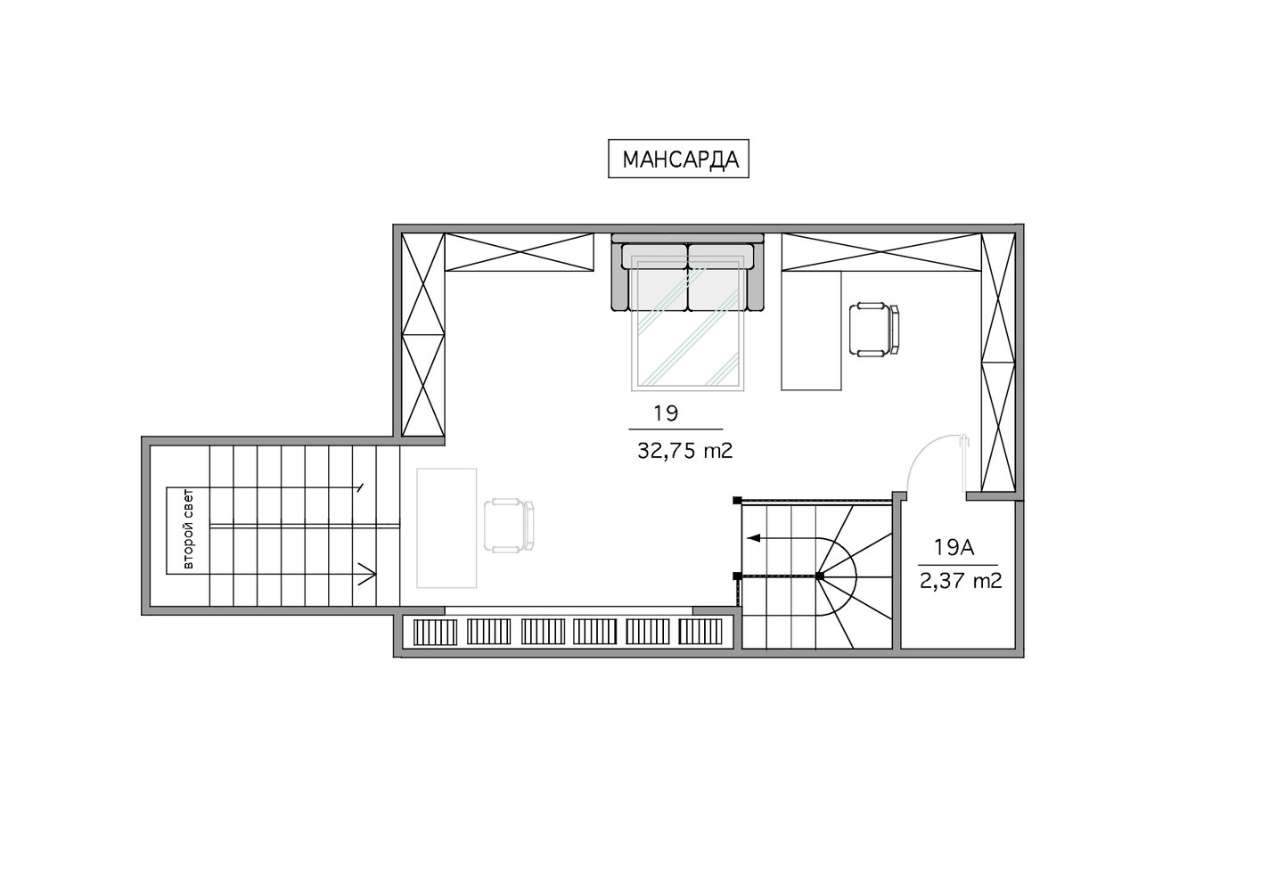 План с расстановкой мебели, мансарда