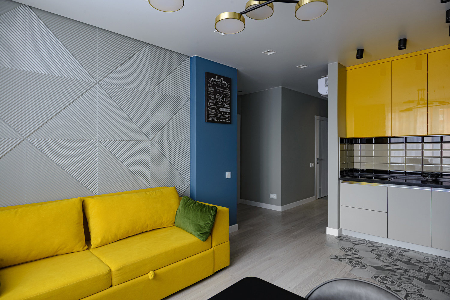 Трехкомнатная квартира с желтыми деталямиДизайн