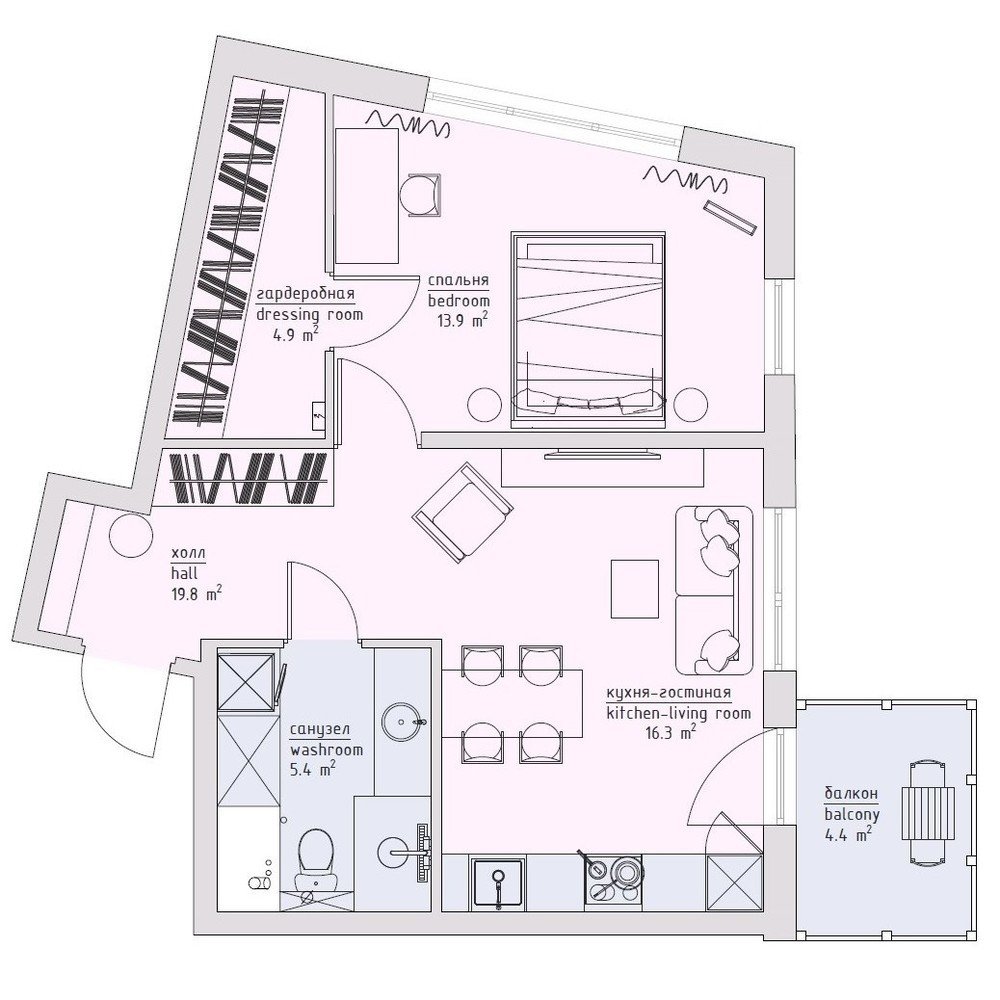 Фотография: Планировки в стиле , Современный, Квартира, Проект недели, Санкт-Петербург, Ульяна Скапцова, 2 комнаты, 40-60 метров, US Interior – фото на INMYROOM
