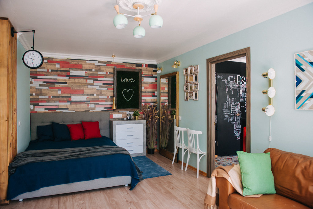 Фотография:  в стиле , Лофт, Современный, Квартира, Проект недели, Черный, Красный, Зеленый, Оранжевый, 2 комнаты, 40-60 метров, Павел Фотеев – фото на INMYROOM