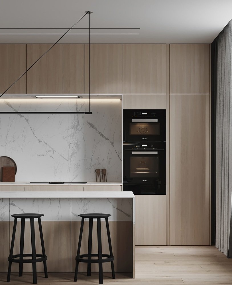 Безмятежно стильный интерьер в белых и деревянных тонахДизайн
