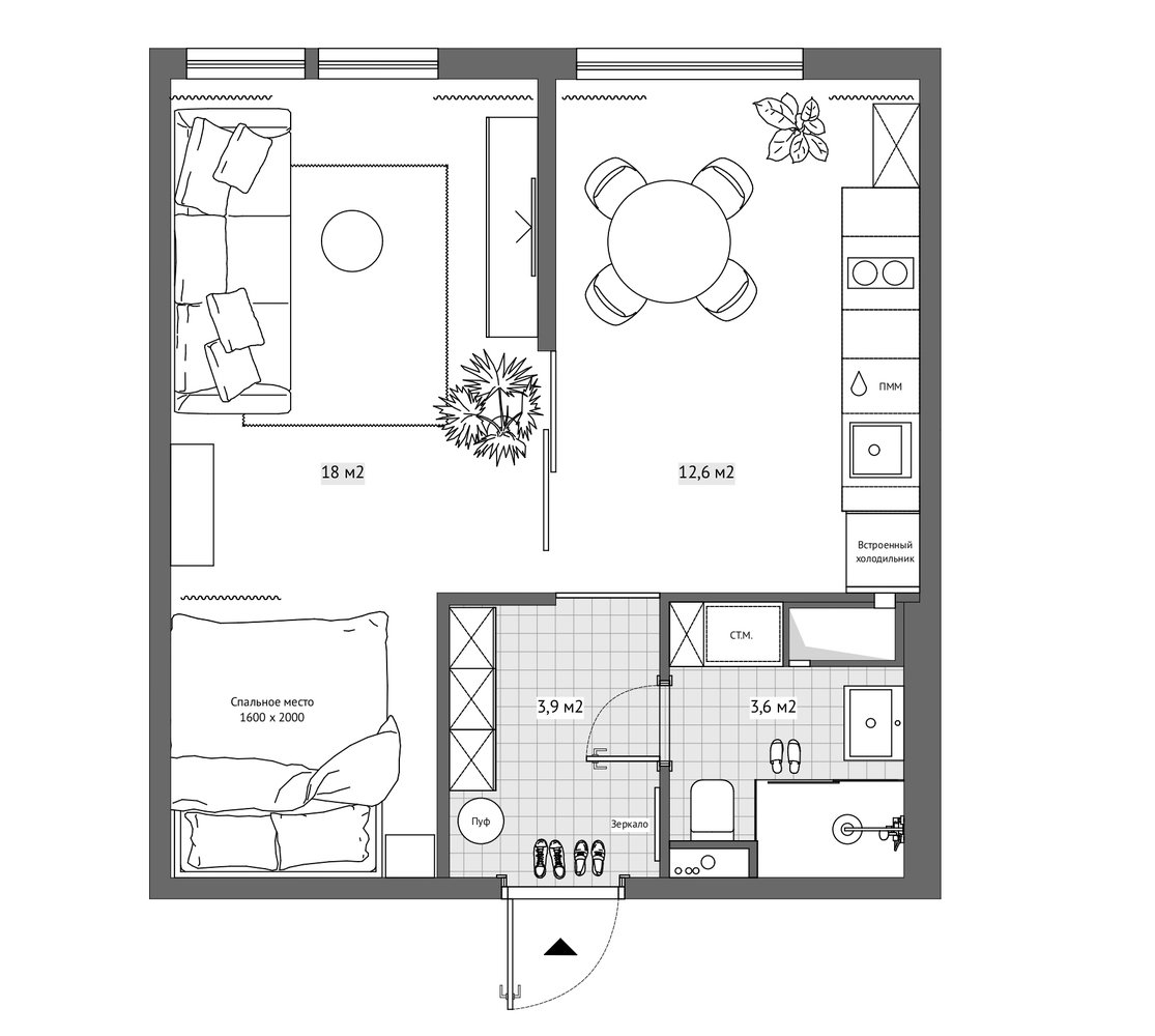 Фотография: Планировки в стиле , Современный, Квартира, Студия, Проект дня, Санкт-Петербург, 1 комната, до 40 метров, Нина Иваненко – фото на INMYROOM