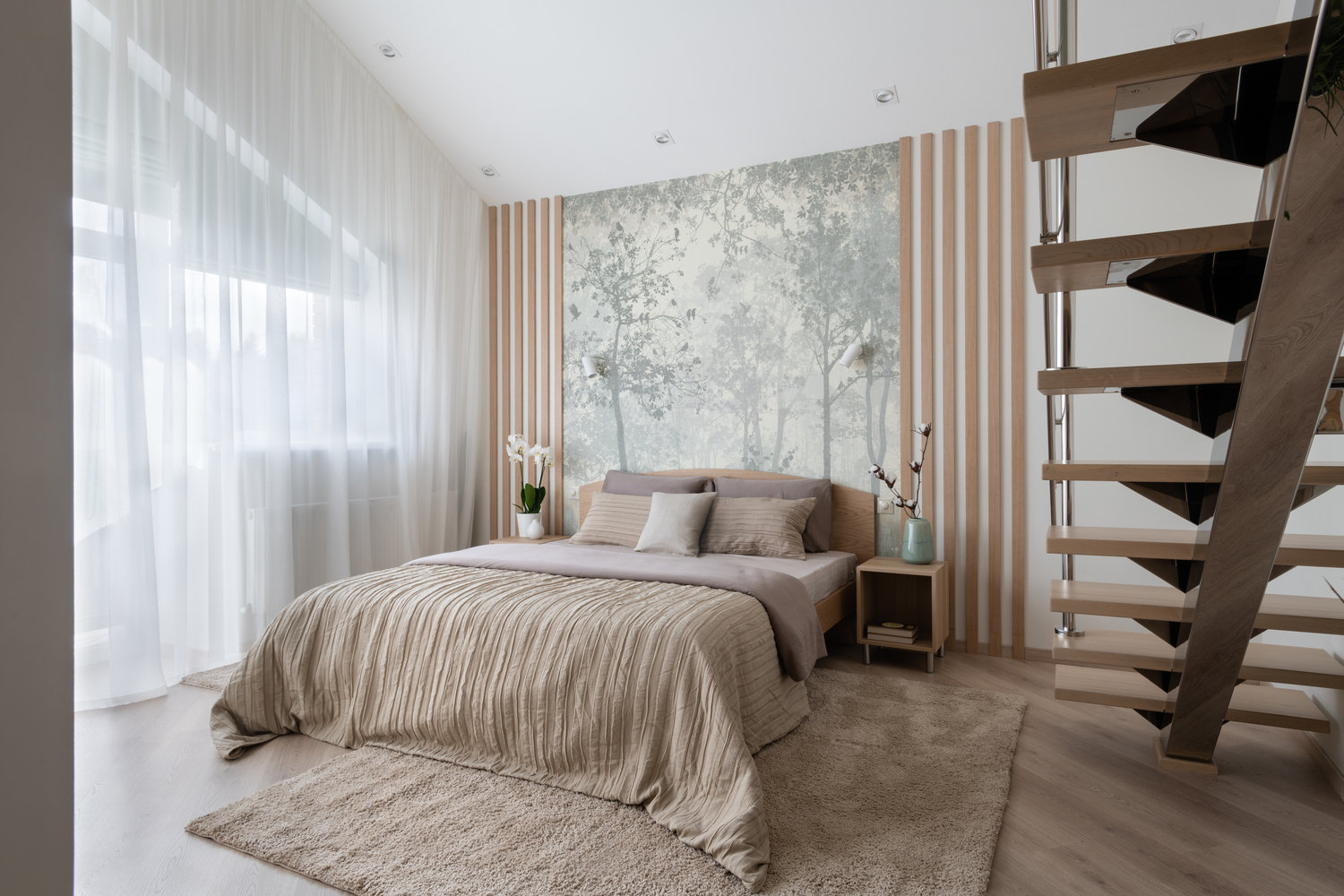 Интерьер загородного дома, в котором много бежевогоДизайн