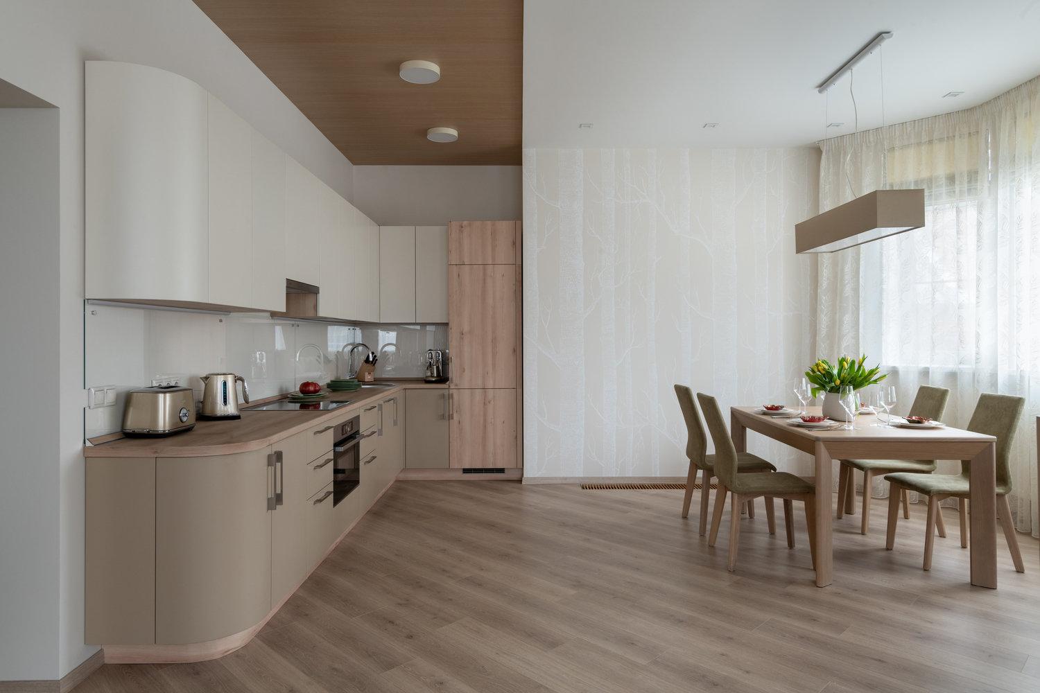Интерьер загородного дома, в котором много бежевогоДизайн