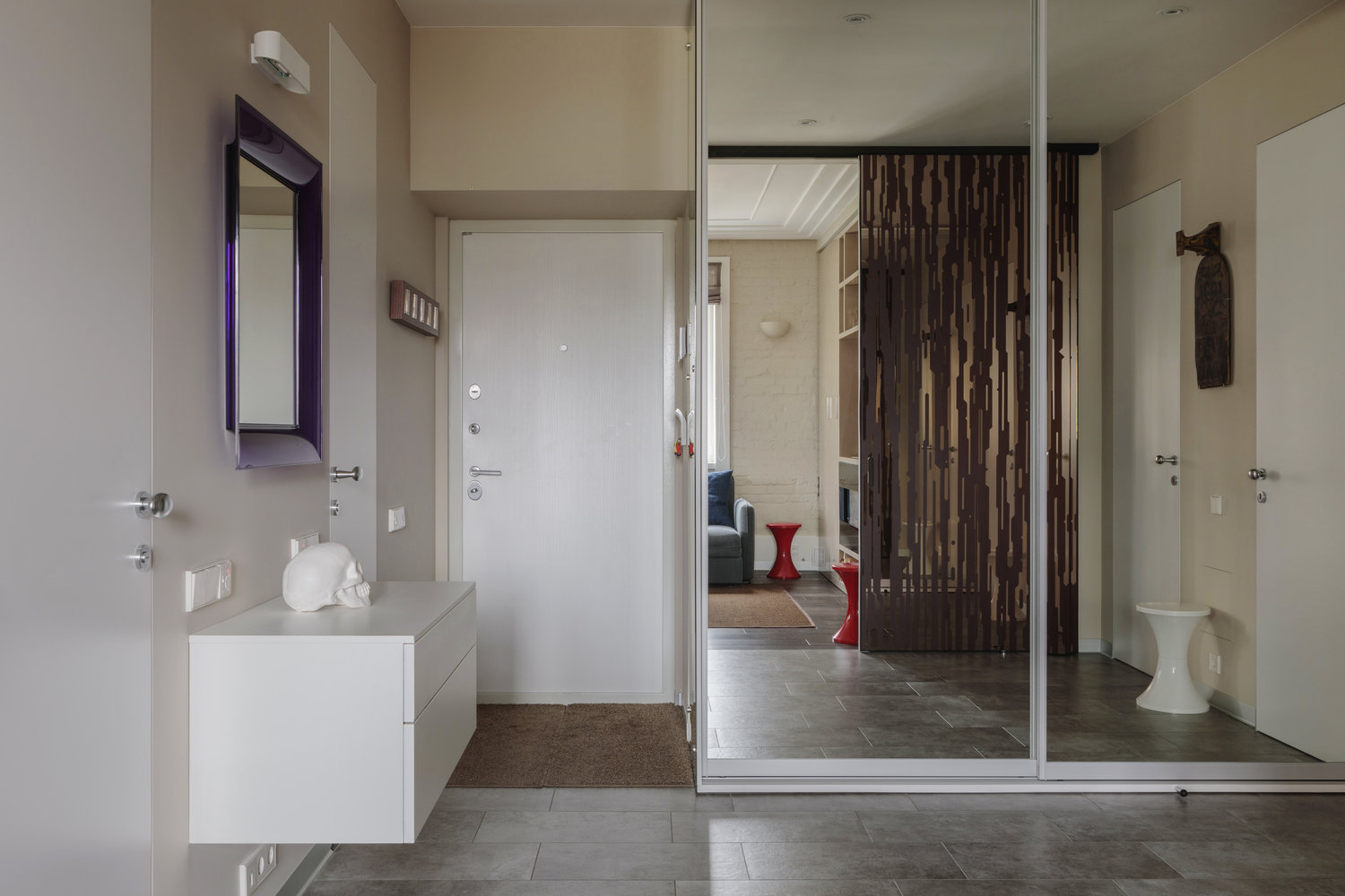 Фотография: Прихожая в стиле Современный, Квартира, Проект недели, Москва, Михаил Новинский, Samsung, Кирпичный дом, 3 комнаты, Более 90 метров, интерьерный телевизор, the serif – фото на INMYROOM