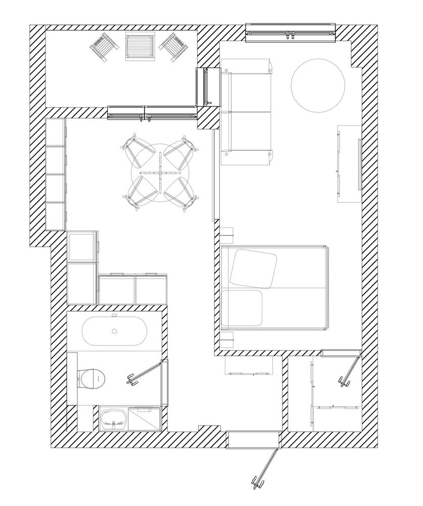 Фотография: Планировки в стиле , Современный, Квартира, Проект недели, 1 комната, до 40 метров, Симферополь, Татьяна Петрова – фото на INMYROOM
