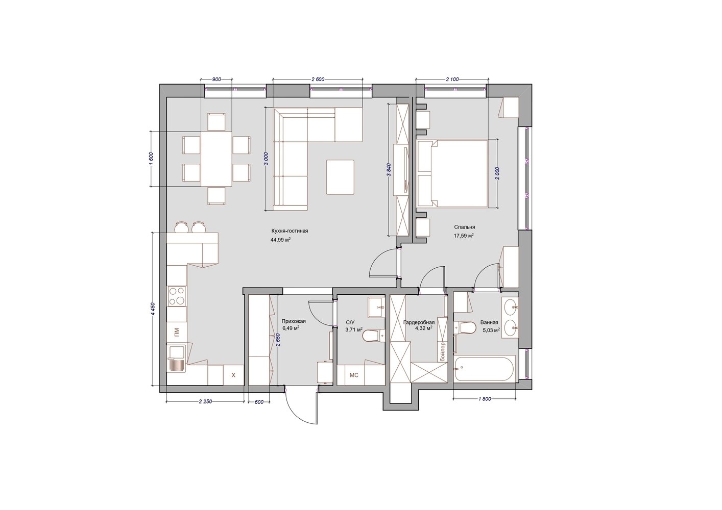 Фотография: Планировки в стиле , Классический, Современный, Квартира, Проект недели, Нижний Новгород, 2 комнаты, 60-90 метров, Bilbao Design – фото на INMYROOM