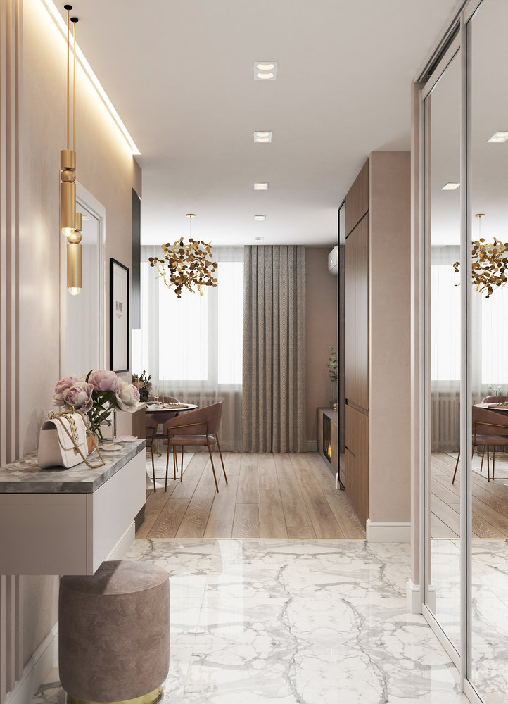Проект двушки с кухней-гостиной и 2 гардеробнымиДизайн