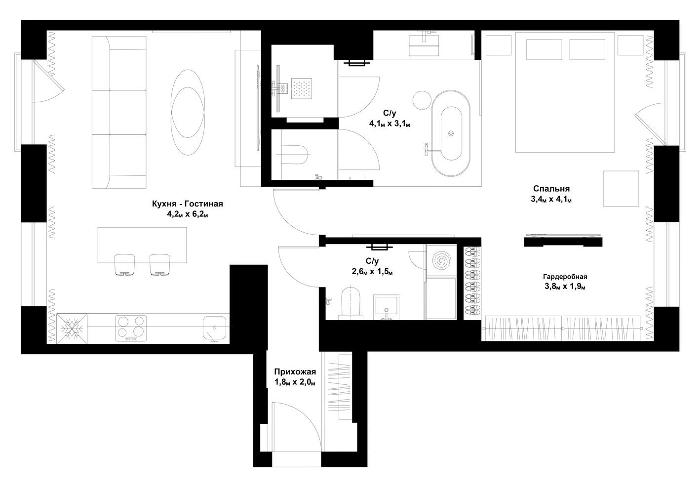 Квартира 73 м², в которой убрали почти все перегородкиДизайн