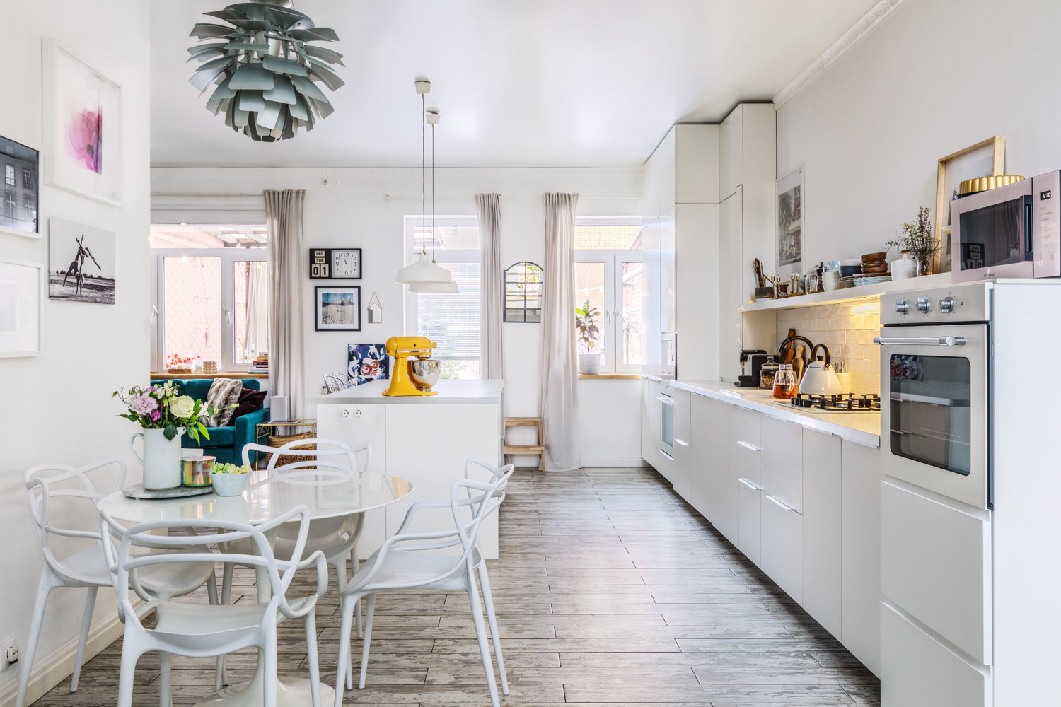 Фотография: Кухня и столовая в стиле Скандинавский, Проект недели, Samsung, Таунхаус, 4 и больше, Спецпроект, интерьерный холодильник, интерьерная микроволновая печь – фото на INMYROOM