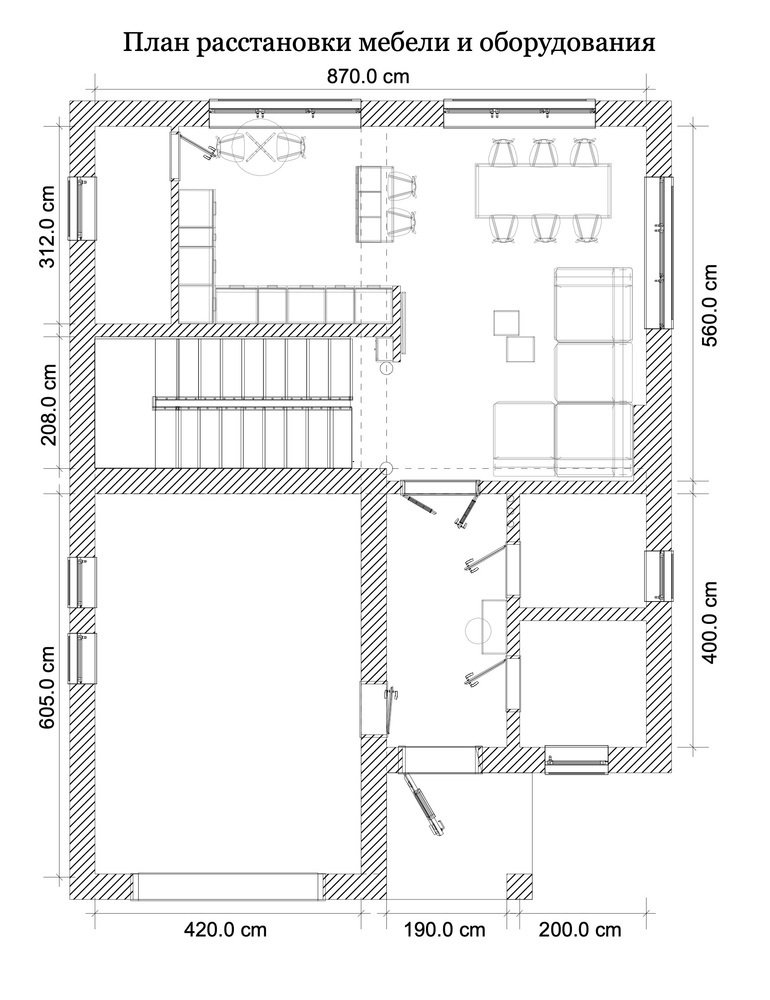 Уютная кухня-гостиная с белым гарнитуром и островом, на которой готовить — сплошное удовольствиеДизайн