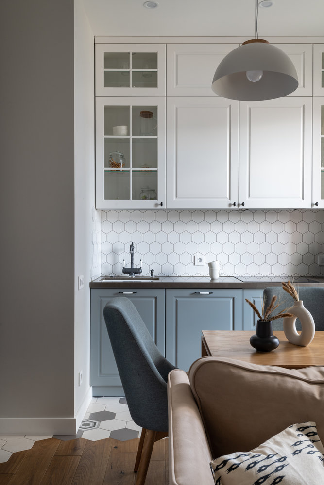 Фотография: Кухня и столовая в стиле Современный, Скандинавский, Квартира, Проект дня, Москва, 3 комнаты, 40-60 метров, 60-90 метров, Вера Шеверденок, Roomba Interior – фото на INMYROOM