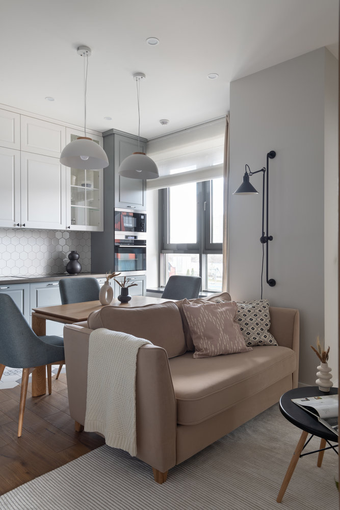 Фотография: Кухня и столовая в стиле Современный, Скандинавский, Квартира, Проект дня, Москва, 3 комнаты, 40-60 метров, 60-90 метров, Вера Шеверденок, Roomba Interior – фото на INMYROOM