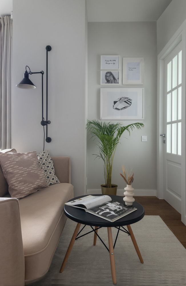 Фотография: Гостиная в стиле Современный, Скандинавский, Квартира, Проект дня, Москва, 3 комнаты, 40-60 метров, 60-90 метров, Вера Шеверденок, Roomba Interior – фото на INMYROOM