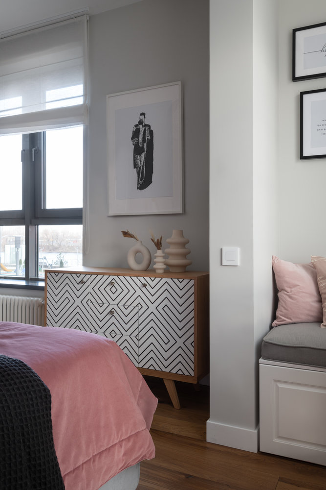 Фотография: Спальня в стиле Современный, Скандинавский, Квартира, Проект дня, Москва, 3 комнаты, 40-60 метров, 60-90 метров, Вера Шеверденок, Roomba Interior – фото на INMYROOM