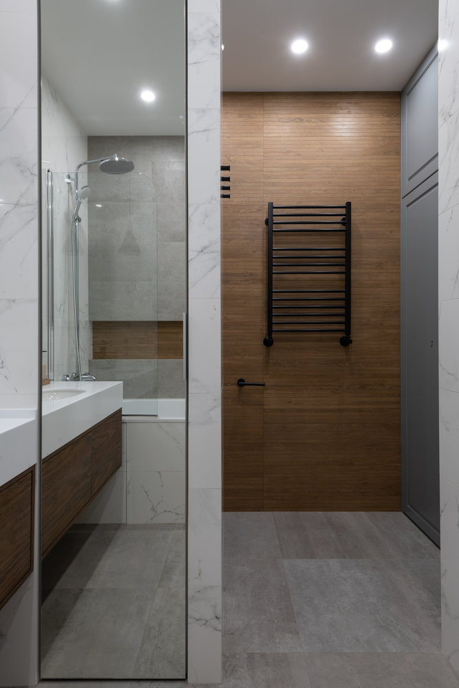 Фотография: Ванная в стиле Современный, Скандинавский, Квартира, Проект дня, Москва, 3 комнаты, 40-60 метров, 60-90 метров, Вера Шеверденок, Roomba Interior – фото на INMYROOM