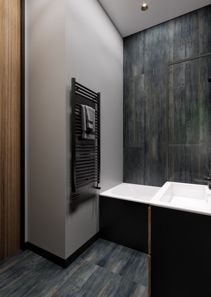 Атмосферная студия для холостяка с бетонной стеной, стеклянными перегородками и тренажерной зонойДизайн
