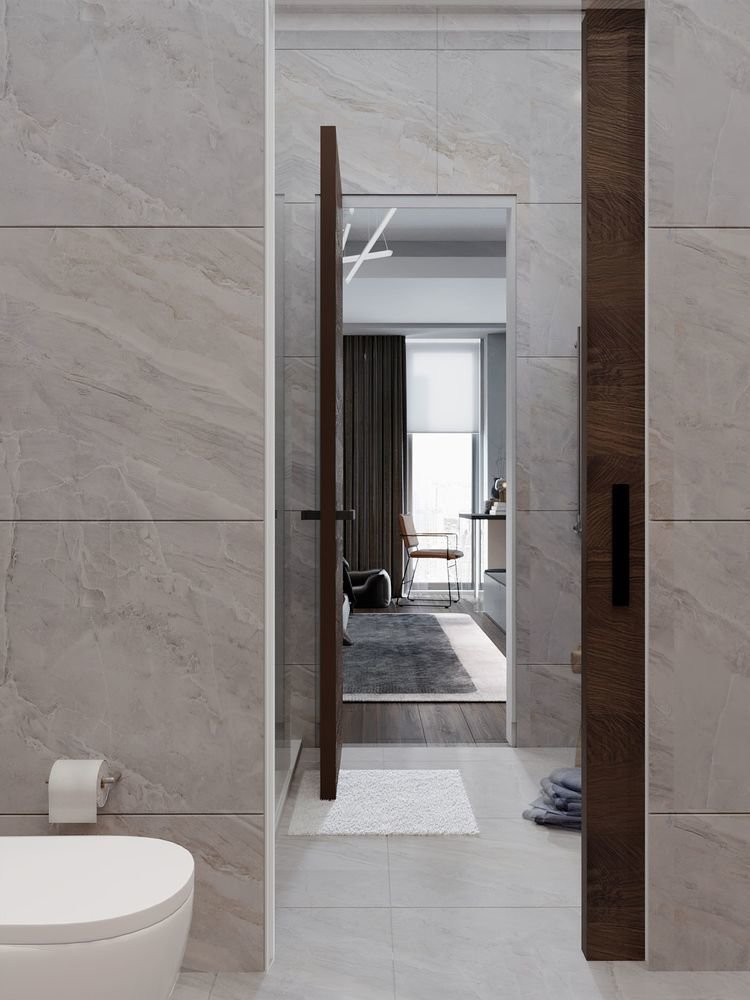 Двери в шпоне от UNION в проекте М. Новинского. Распашная и раздвижная в пенал.