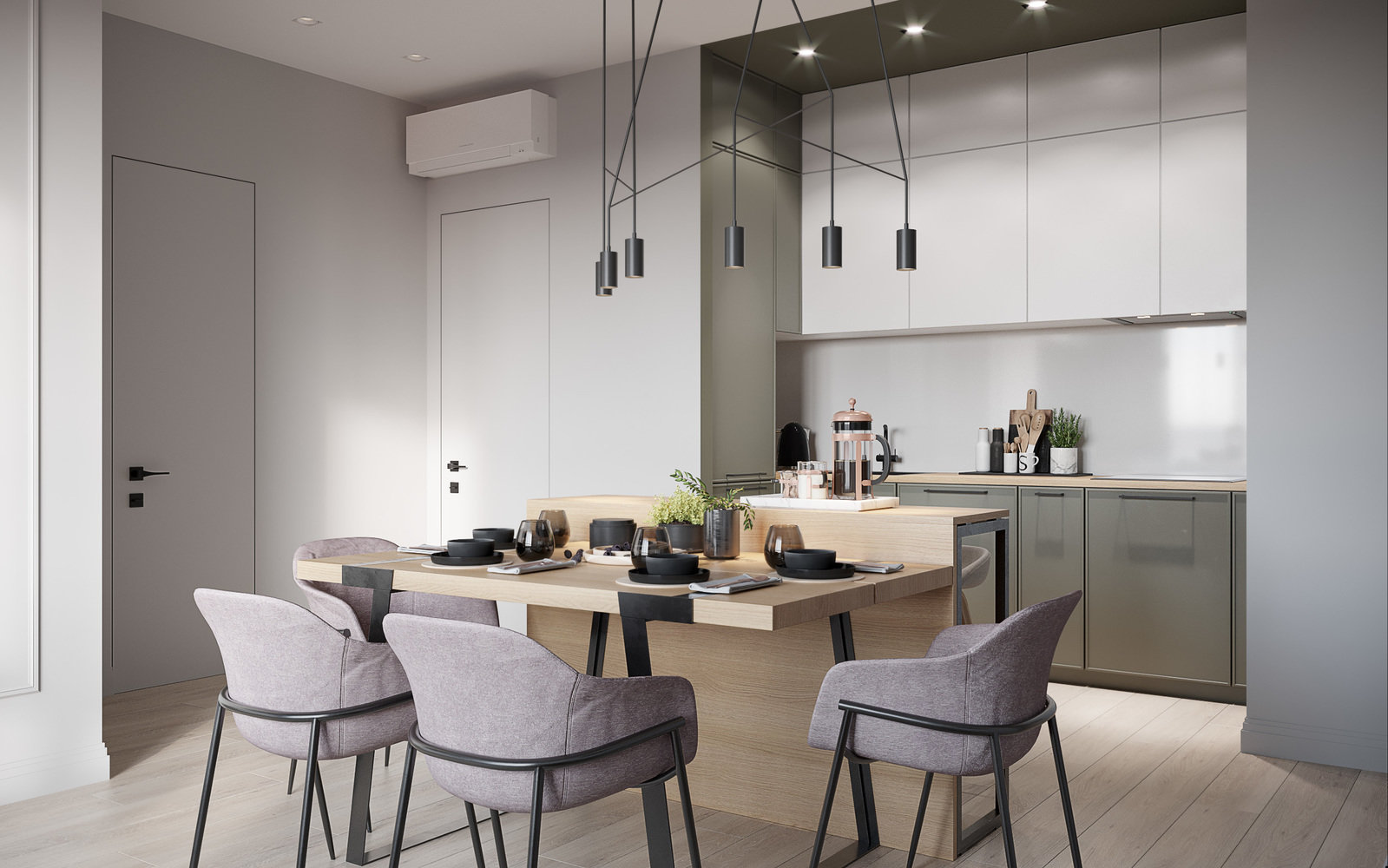 Лаконичный дизайн квартиры с трехметровыми потолками, скрытыми дверями и окном в санузле4,4