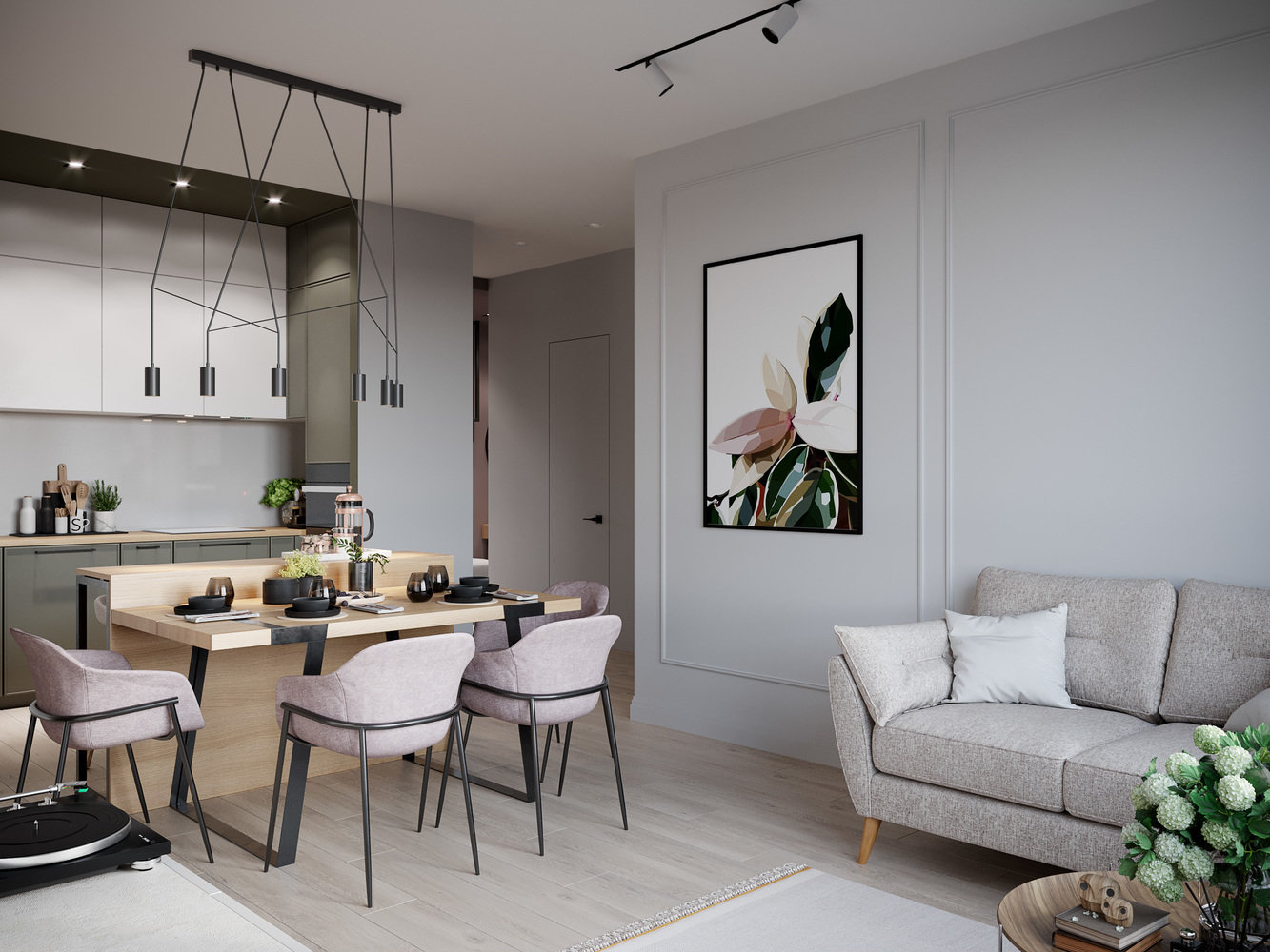 Лаконичный дизайн квартиры с трехметровыми потолками, скрытыми дверями и окном в санузле4,6