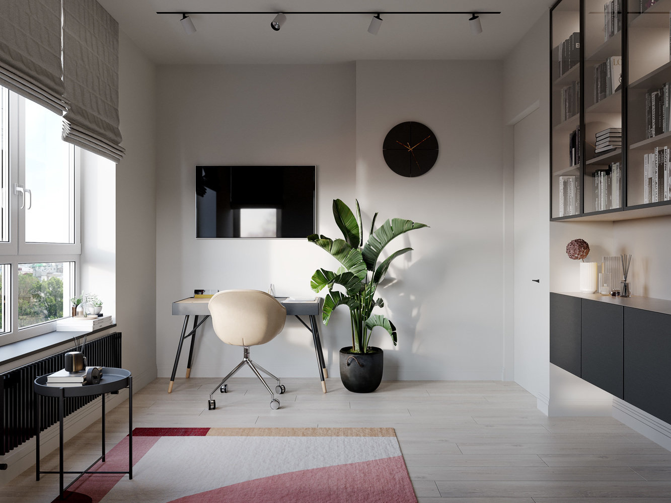 Лаконичный дизайн квартиры с трехметровыми потолками, скрытыми дверями и окном в санузле4,6