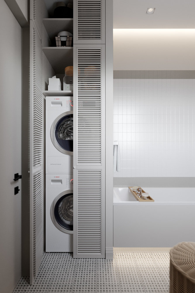 Лаконичный дизайн квартиры с трехметровыми потолками, скрытыми дверями и окном в санузле4,8