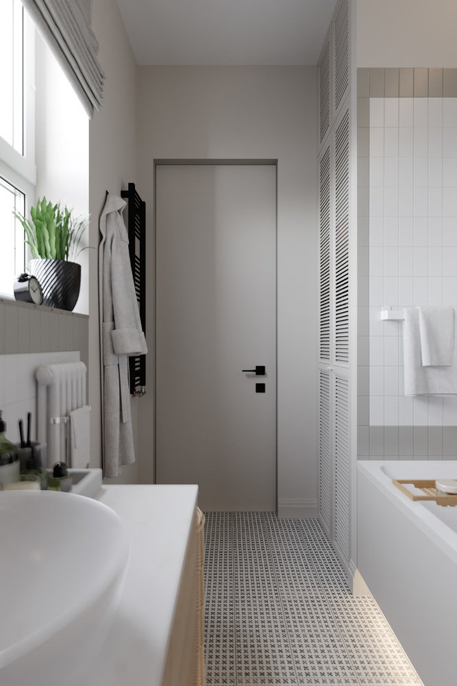 Лаконичный дизайн квартиры с трехметровыми потолками, скрытыми дверями и окном в санузле4,7