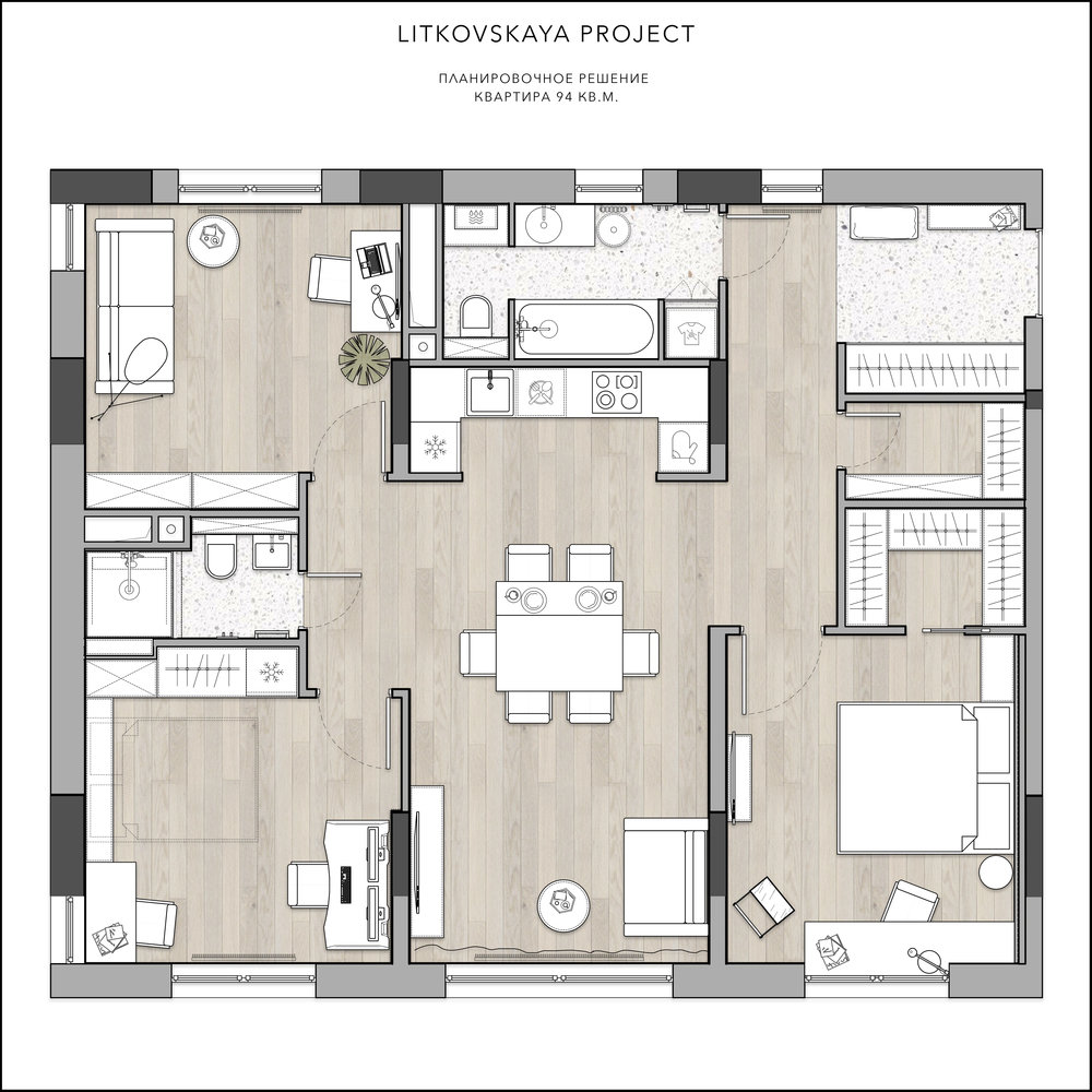 Лаконичный дизайн квартиры с трехметровыми потолками, скрытыми дверями и окном в санузле4,4