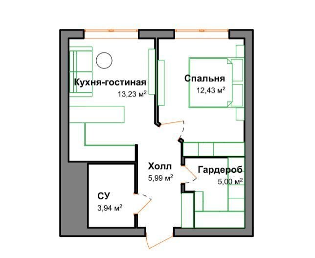 Фотография: Планировки в стиле , Современный, Квартира, Минимализм, Проект недели, Балашиха, 1 комната, 40-60 метров, Марина Гри – фото на INMYROOM