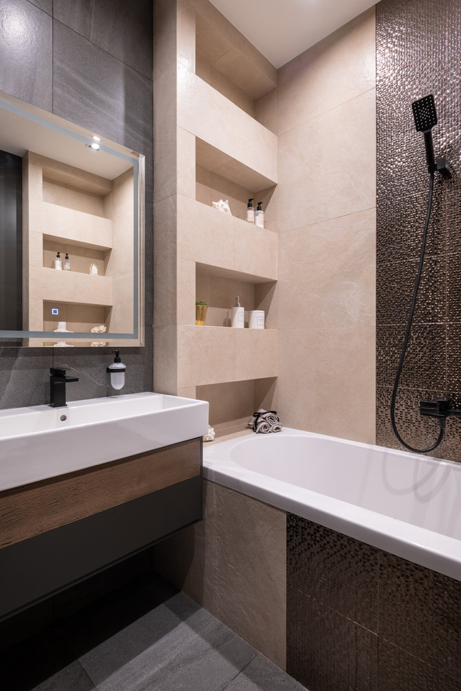 Удобная трешка, в которой много зеркал и шкафов на заказДизайн