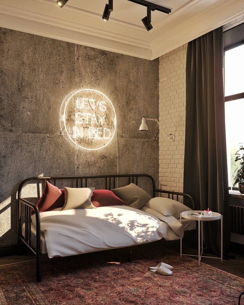 Фотография: Спальня в стиле Лофт, Эклектика, Квартира, Проект дня, Москва, Сталинка, 3 комнаты, 40-60 метров, 60-90 метров, IN MY BOX, Анна Показаньева – фото на INMYROOM
