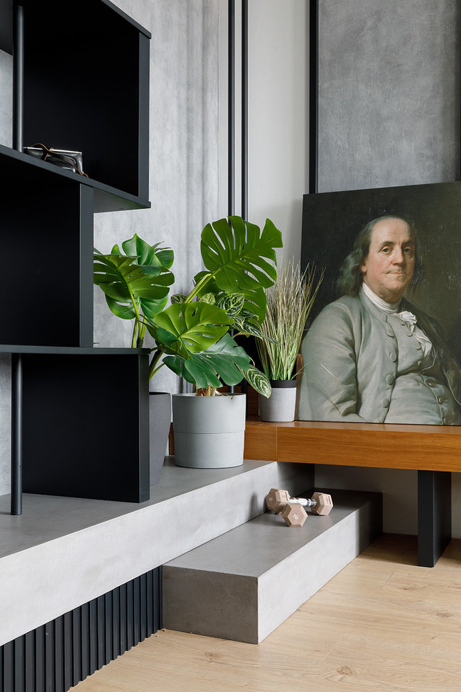 Двушка со встроенными шкафами и гардеробной за стекломДизайн